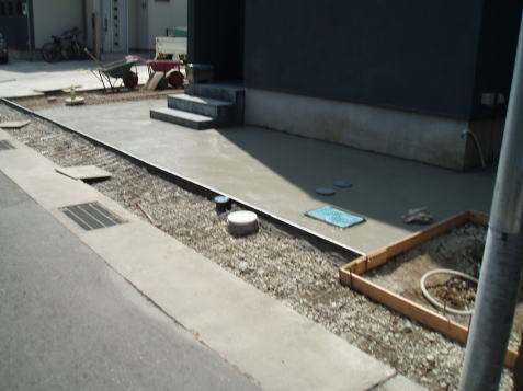 ・・・下地のコンクリートを打ち、その後すぐに色粉を入れたモルタルで仕上げました。色むらが出来とってもよくなったと施主様にも喜んでもらえました。
