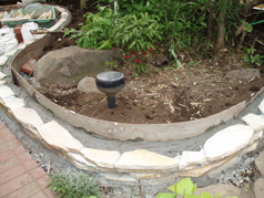・まずは自然石で小端積みの花壇を作っていきます。