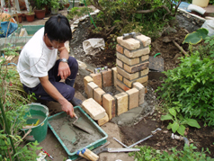 ・アンティークレンガを使用して立水柱をつくります。これでお庭にアクセントができます。
